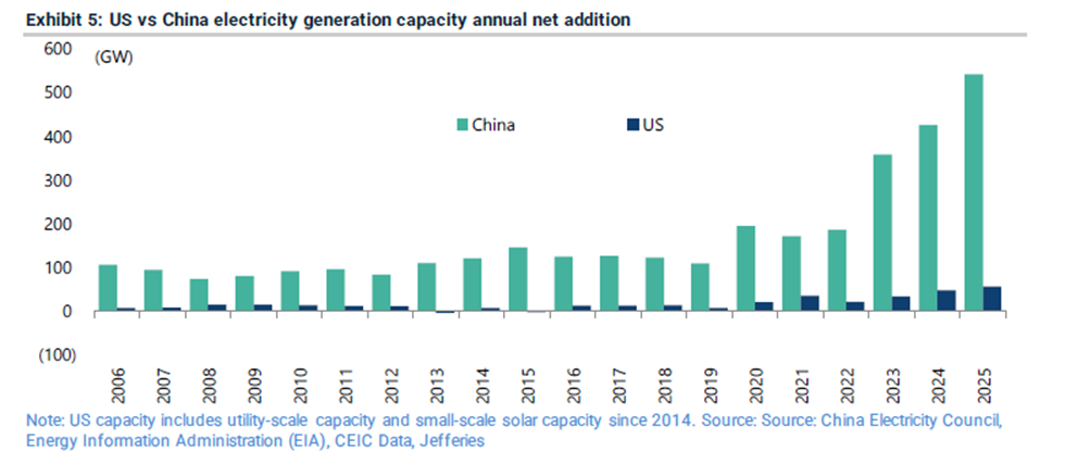 Questi vincoli non riguardano soltanto la redditività dei singoli operatori: hanno implicazioni strategiche di portata ben più ampia. Se la capacità infrastrutturale diventa il vero fattore limitante della corsa all'IA, allora il vantaggio competitivo tra le grandi potenze non si gioca più solo sui modelli o sui chip, ma sulla capacità di alimentarli. E su questo piano, il confronto con la Cina è impietoso. Nel solo 2025, Pechino ha aggiunto oltre 540 GW di nuova capacità elettrica, circa dieci volte le nuove installazioni statunitensi nello stesso periodo e una cifra pari a oltre il 40% dell'intera base installata americana costruita nel corso di un secolo. Eppure, nemmeno questo immenso vantaggio energetico è sufficiente se mancano i chip e la tecnologia d'avanguardia di cui il gigante asiatico ha disperato bisogno ed è carente a causa del blocco delle esportazioni hi-tech. Il risultato è un equilibrio instabile: gli Stati Uniti hanno i chip ma non l'energia per accenderli; la Cina ha l'energia ma non i chip per sfruttarla.