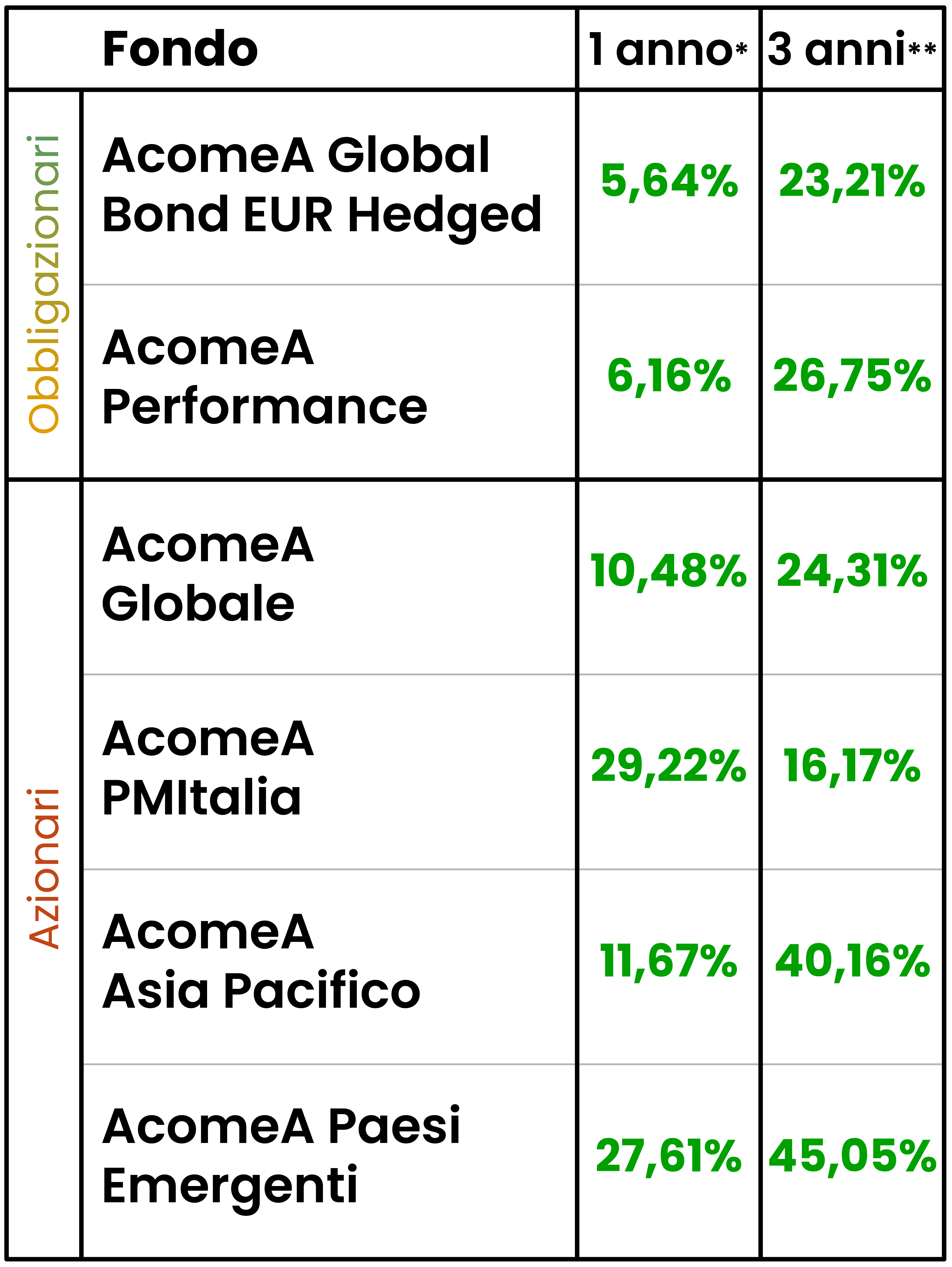 Questa è una comunicazione di marketing. Prima di adottare qualsiasi decisione di investimento si prega leggere attentamente il Documento contenente le informazioni chiave per gli investitori (il “KID”), il Prospetto, il Regolamento di gestione e il modulo di sottoscrizione. Tali documenti che descrivono anche i diritti degli investitori, sono disponibili in lingua italiana e possono essere consultati in qualsiasi momento, gratuitamente, sul sito web della SGR www.acomea.it, alla sezione «Documenti e Moduli», e possono essere ottenuti gratuitamente, su richiesta, presso la sede della SGR e presso i collocatori. Informazioni sulle specificità del Fondo e sugli aspetti generali in tema sostenibilità (ESG) ai sensi del Regolamento (UE) 2019/2088, sono disponibili al link https://www.acomea.it/sostenibilita/.